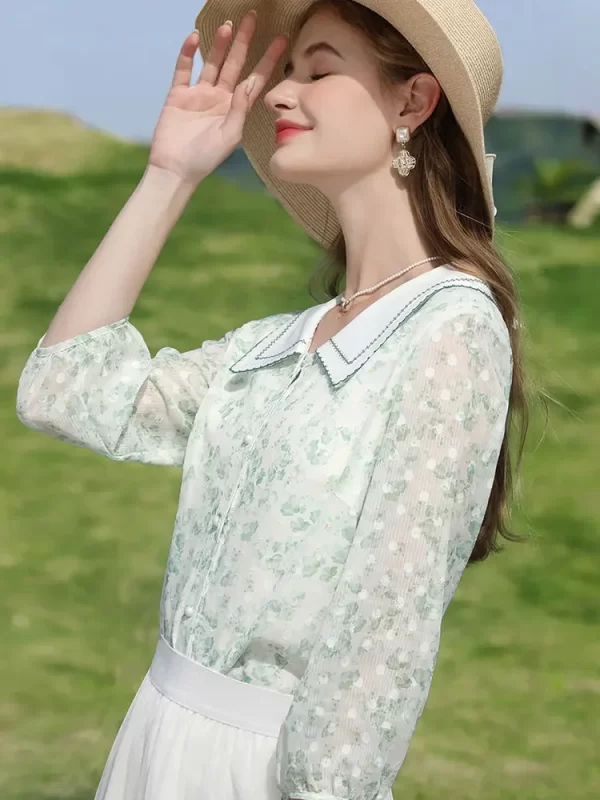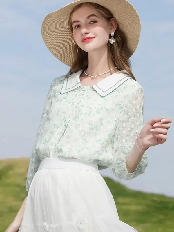 - Collar: Peter pan Collar