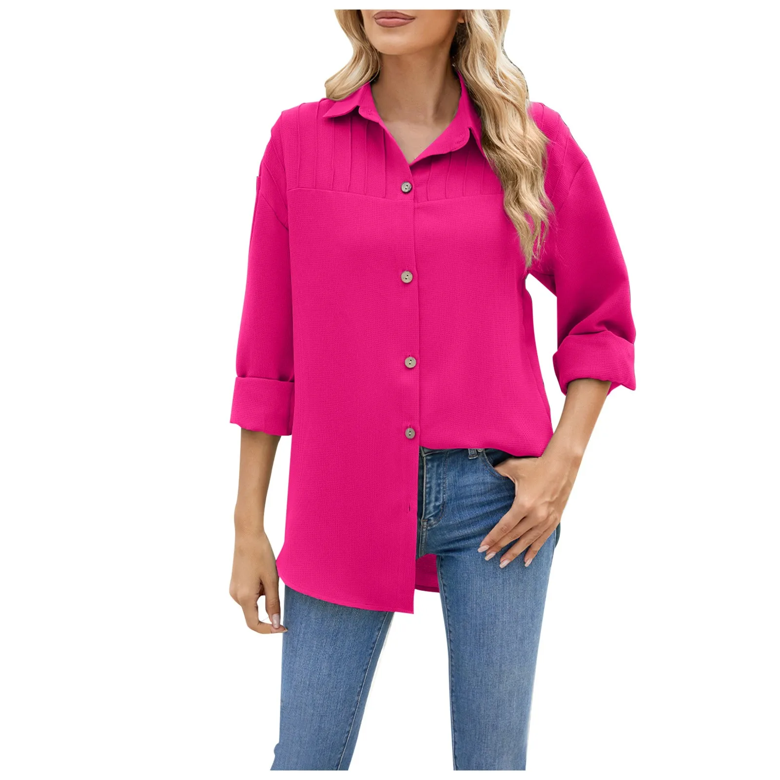 2024 women’s new autumn and winter solid color with lapel button long sleeve loose shirt