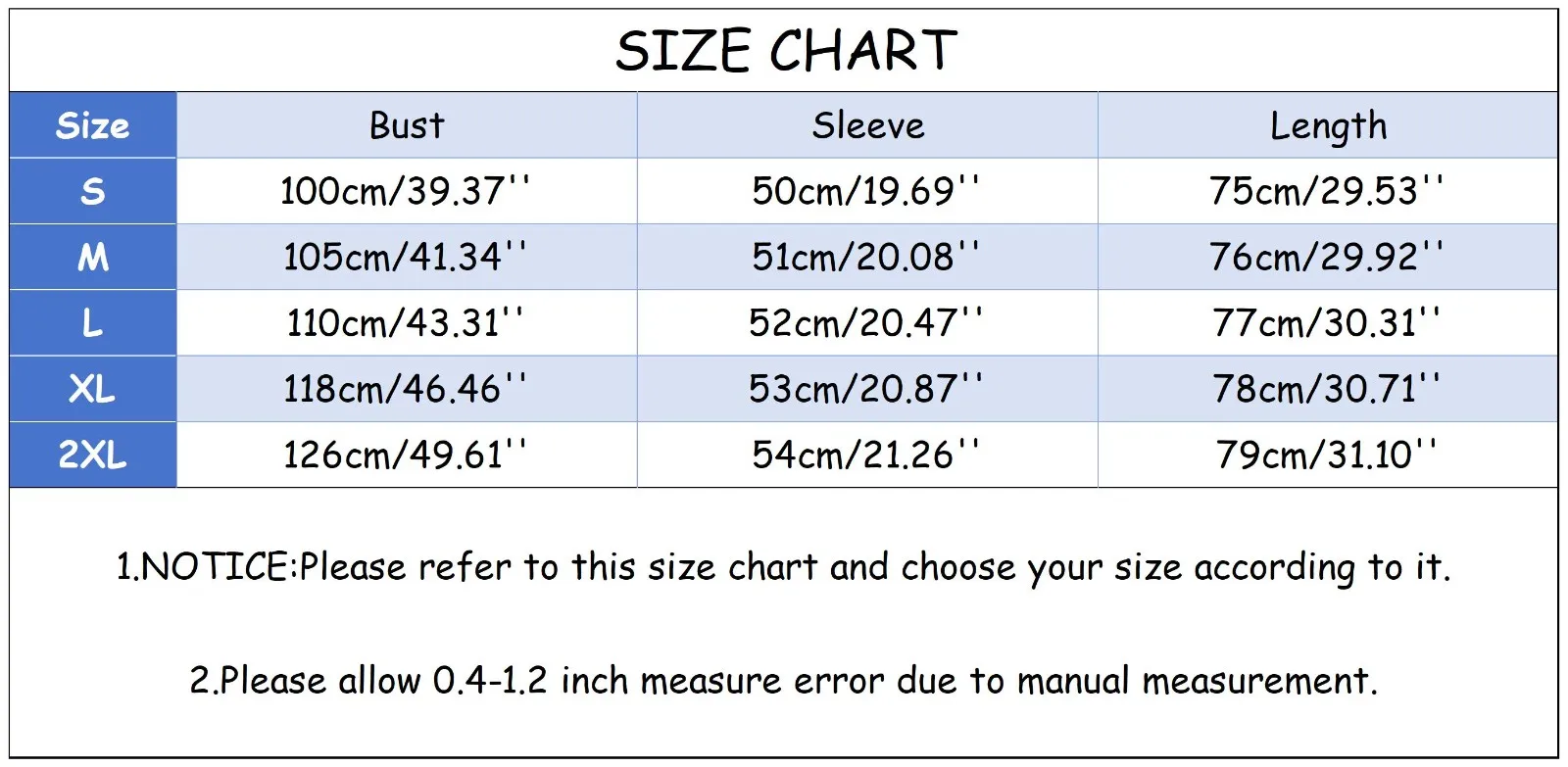 Size:L | Bust:110cm/43.31” | Sleeve:52cm/20.47” | Length:77cm/30.31” |